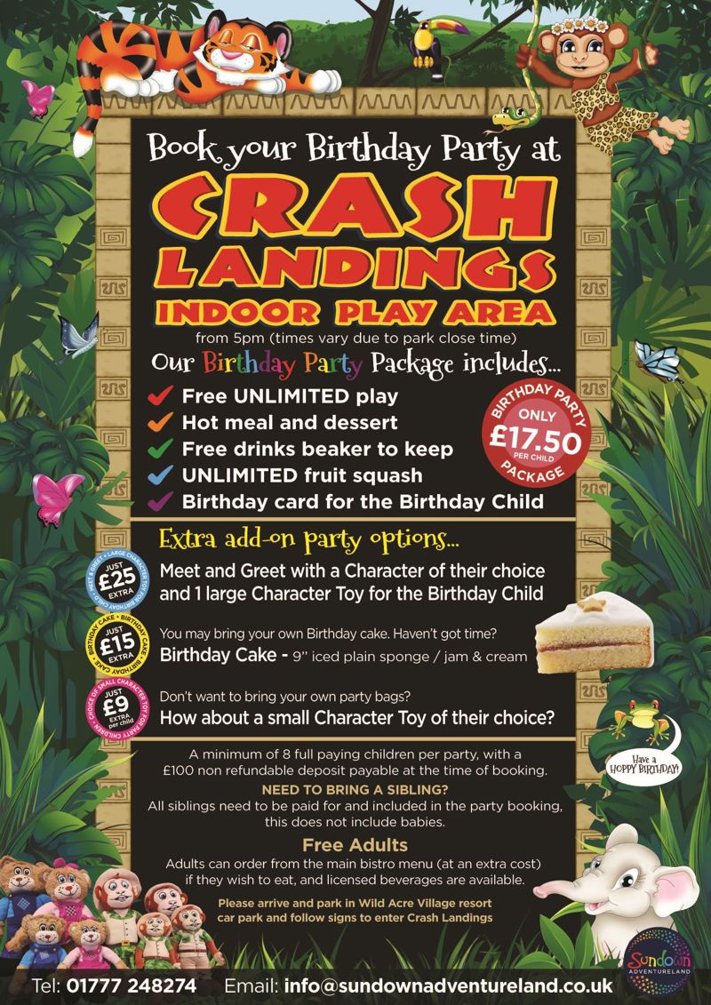 Tel: 01777 248274 or Email: info@sundownadventureland.co.uk
