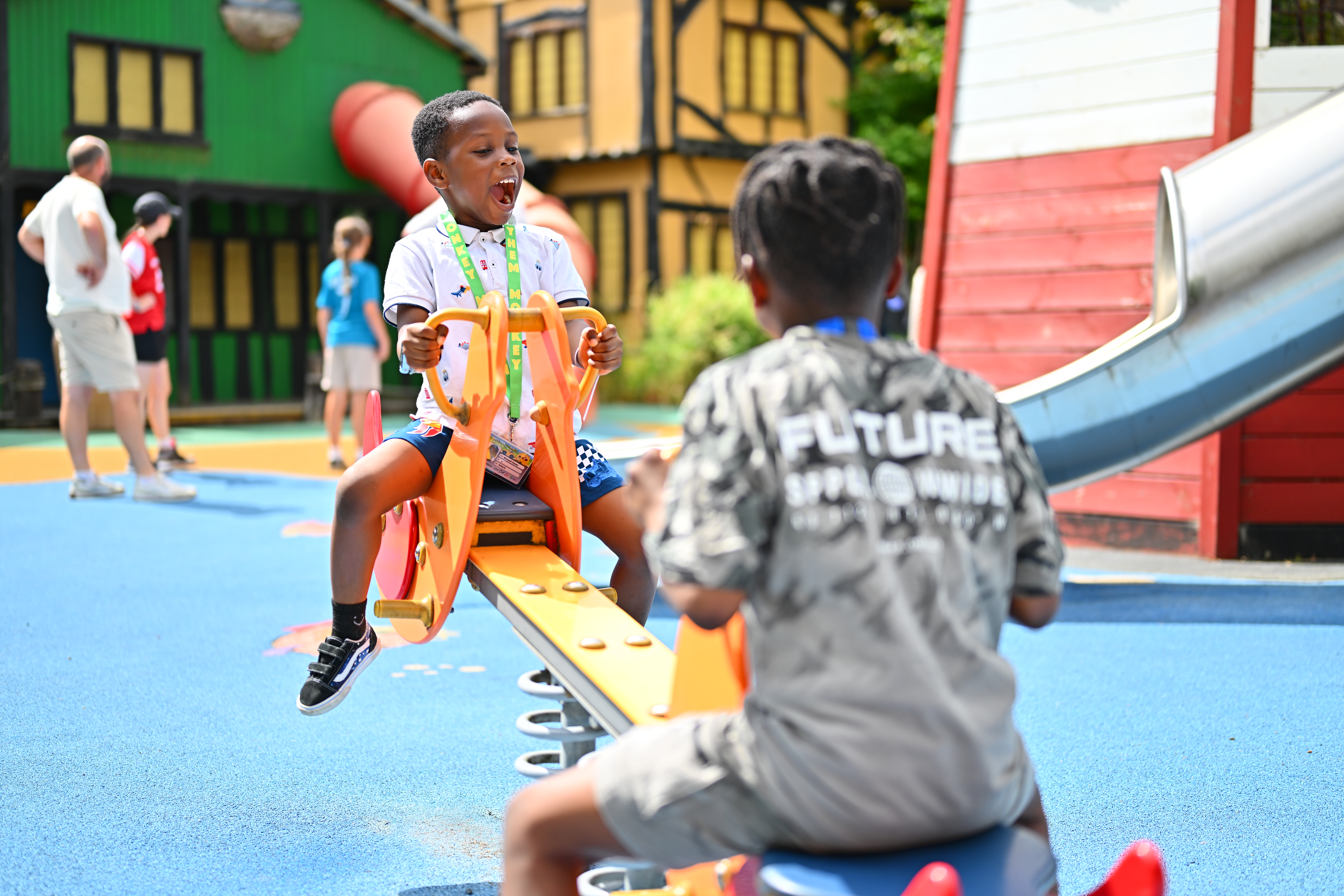 - Please be aware during warm weather slides may become hot! Ensure children cover arms and legs before using the slides.