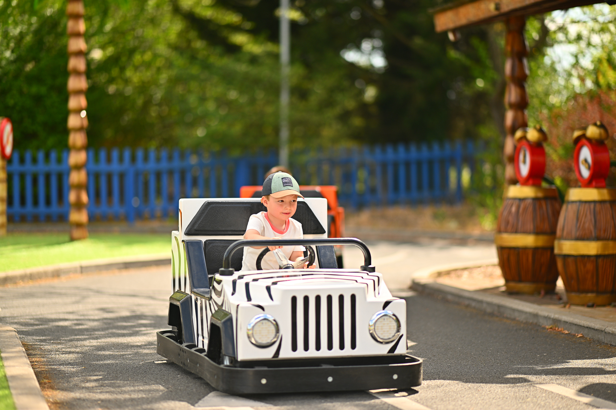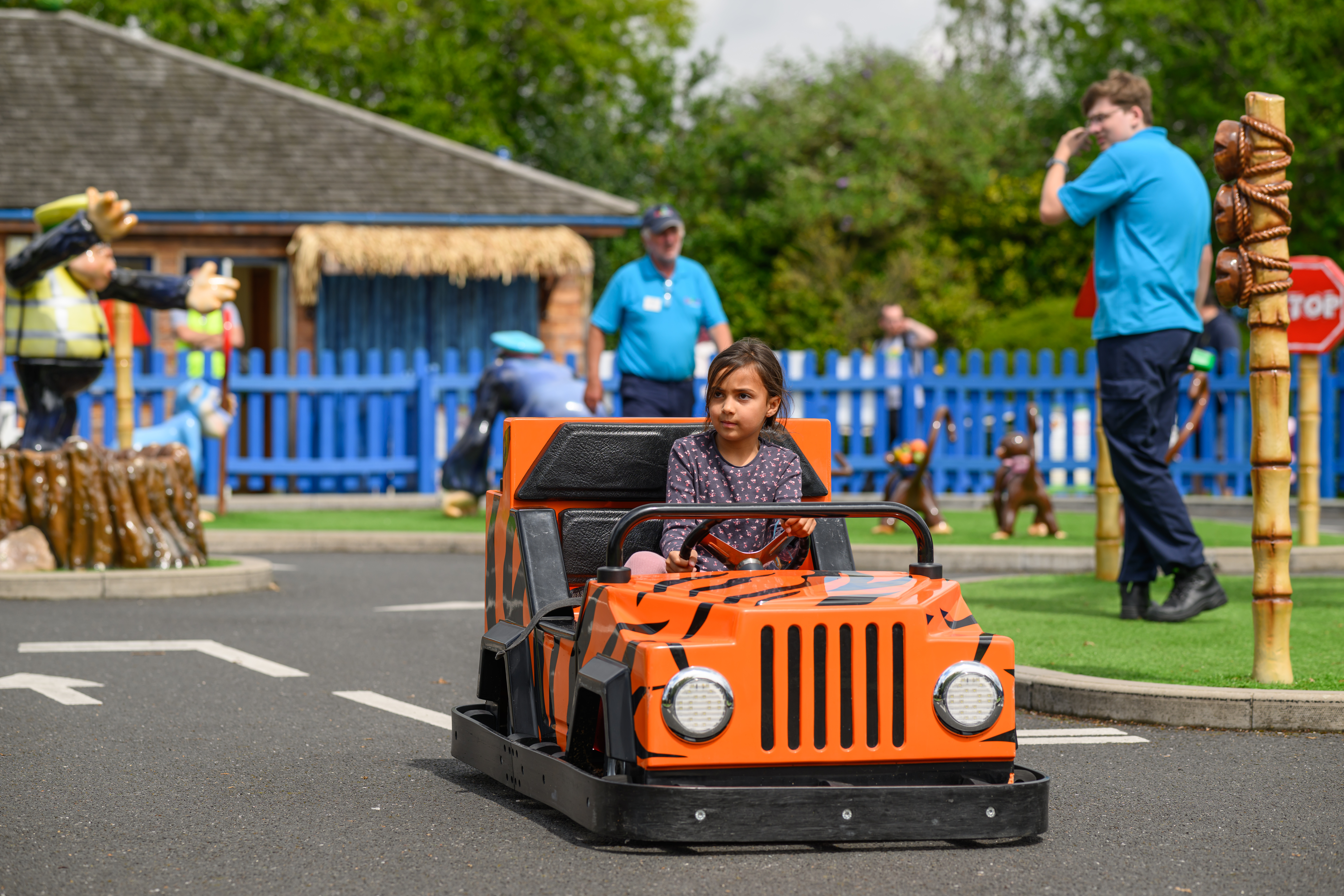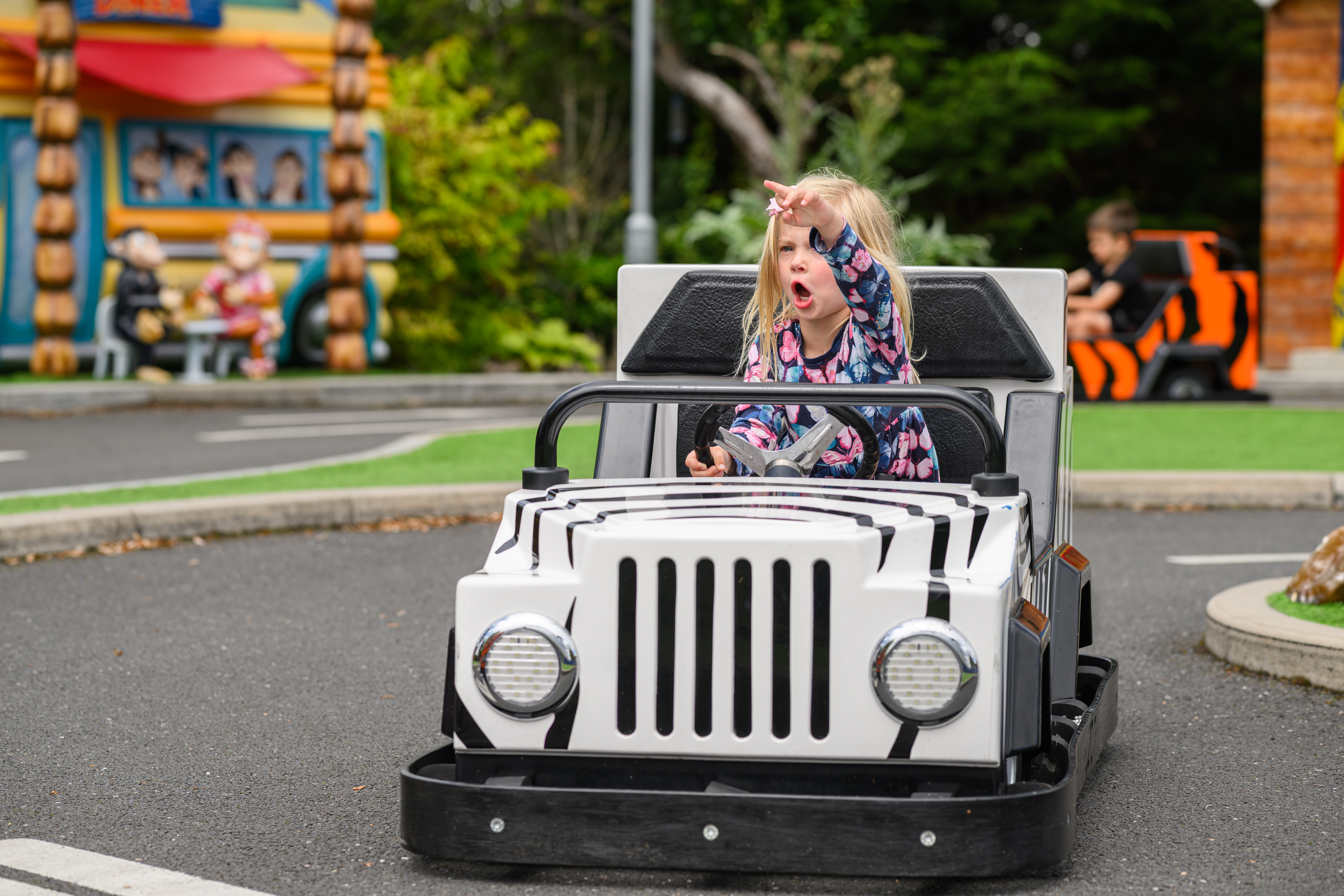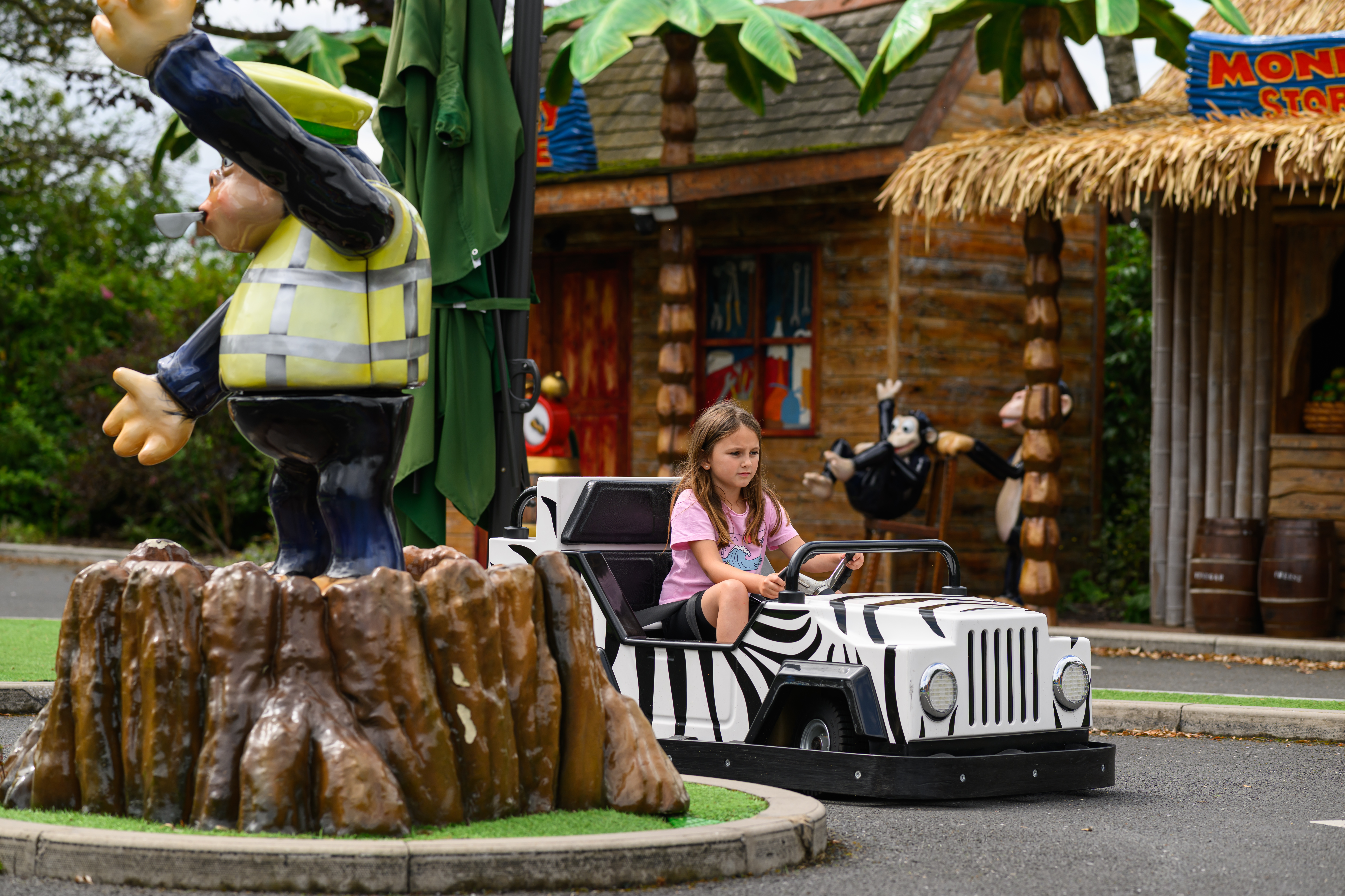 Beware, it’s like a jungle out there and this is the Monkey Mayhem Driving School, so expect lots of jungle and monkey based fun as they make their way around the specially designed track.